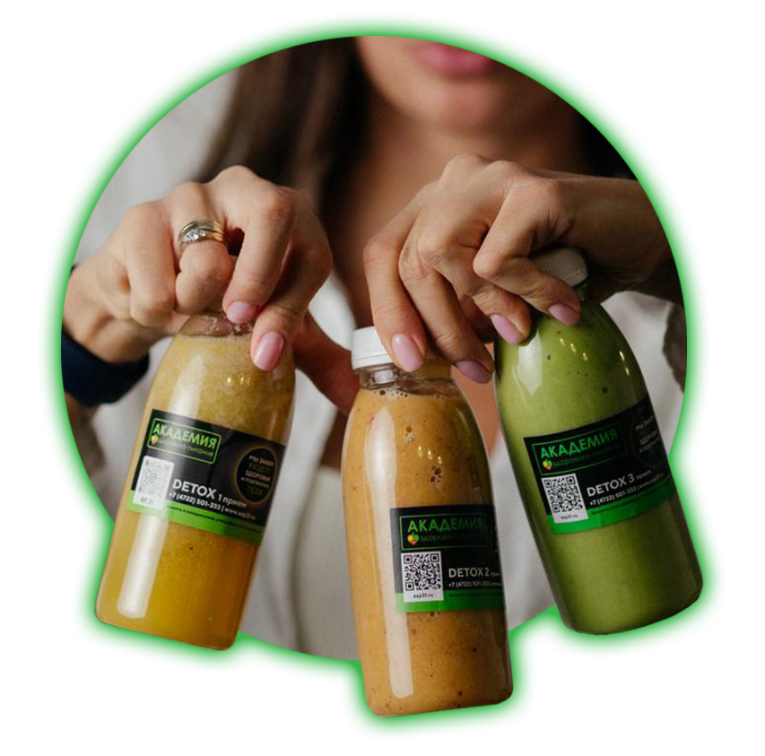 Это шесть бутылочек смузи на день. Программа направлена на очищение организма от шлаков и токсинов.